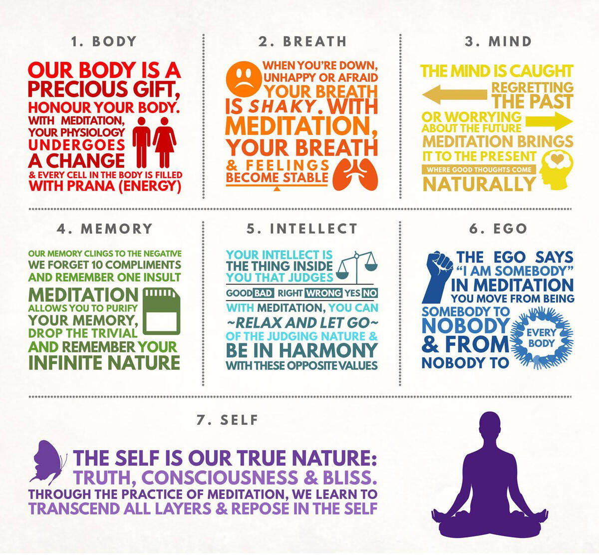 Yogic practices based on a seven layers model